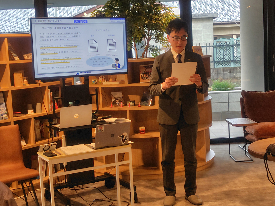 2月26日、当事務所の代表・高橋朋宏が世田谷区の特別養護老人ホーム『代田の家』で遺言ワークショップの講師をいたしました。